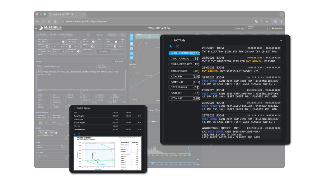 Anemos 5 integrates routing, OFP generation and weight & balance into one modern SaaS platform – eliminating fragmented workflows and accelerating dispatch decisions. The result: a streamlined, intelligent system that ensures every flight is optimized, compliant and ready for release in record time.
