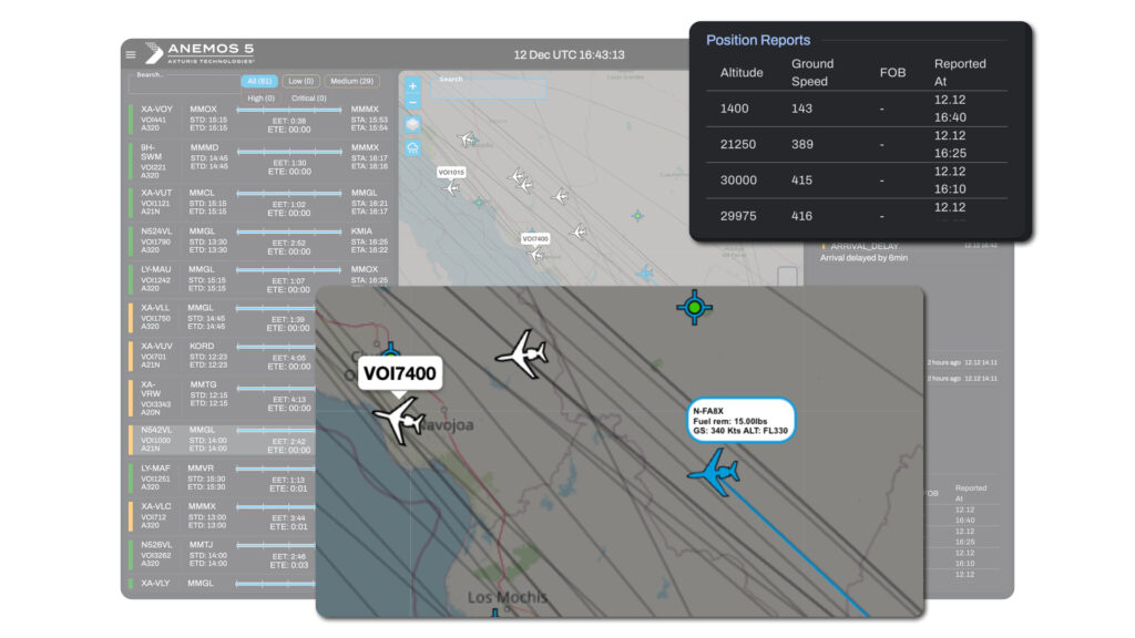 Fully connected to the Anemos 5 ecosystem, it enhances situational awareness, strengthens operational decision‑making, and automatically correlates in‑air events with planning data and performance metrics. The result: a clear, intelligent picture of each flight from takeoff to touchdown.