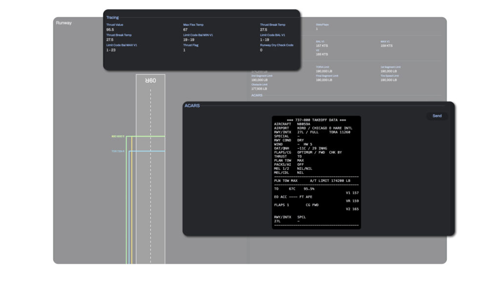 The Runway Performance module delivers precise takeoff and landing calculations by combining real‑time weather, aircraft configuration and airport data to ensure compliant payload and structural limits. Native SCAP integration, MEL and obstacle automation and a dynamic rule engine streamline complex performance logic, while validated results can be transmitted directly to the cockpit via ACARS for immediate crew use.